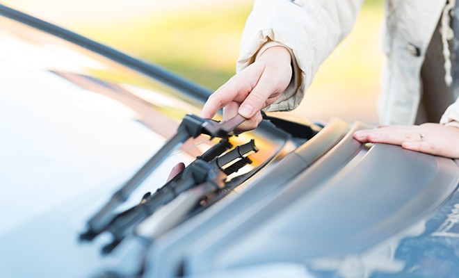 Examine your windshield wipers; look for signs of wear or damage like splitting. Change them immediately if they aren’t clearing your windshield effectively. You may consider switching to a winter wiper blade – they typically have a durable cover that helps prevent slush and snow from freezing joints.