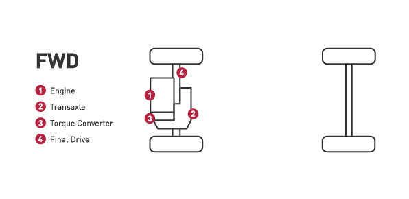 The majority of vehicles on the road today are powered by front-wheel drive systems. In this system, the front wheels provide the power. All of the drivetrain components are located in the front of the vehicle which increases traction in the front wheels. Vehicles with front-wheel drive are typically lighter, helping to improve gas mileage.