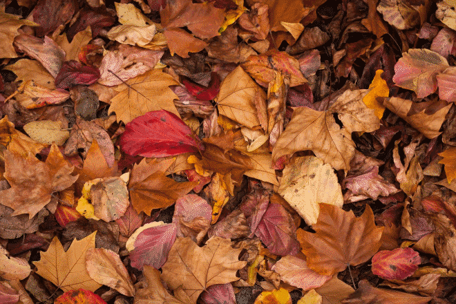 Falling leaves can gather in a pile and create a road hazard. Wet leaves can be as slippery as ice; avoid braking on leaves gathered on the road. Fallen leaves can also hide road markings and obscure hazards like potholes and bumps.