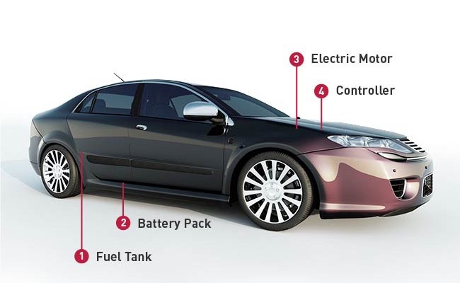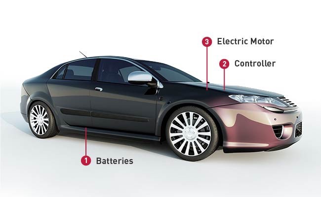 Electric motor – Takes the energy from the controller to power the motor and move the vehicle.